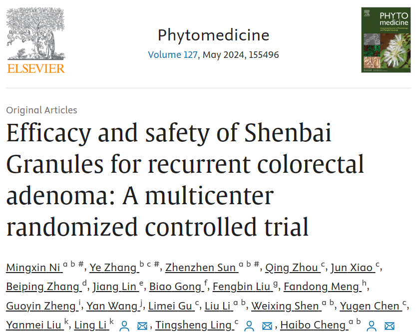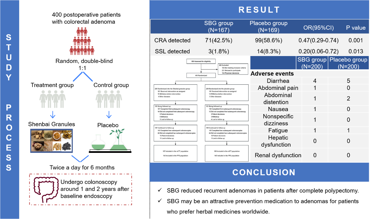 题目:Efficacy and safety of Shenbai Granules for recurrent colorectal adenoma: A multicenter randomized controlled trial