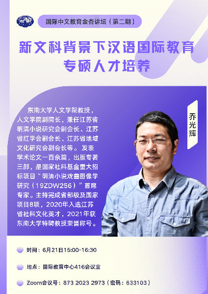 国际中文教育金杏讲坛:新文科背景下汉语国际教育专硕人才培养