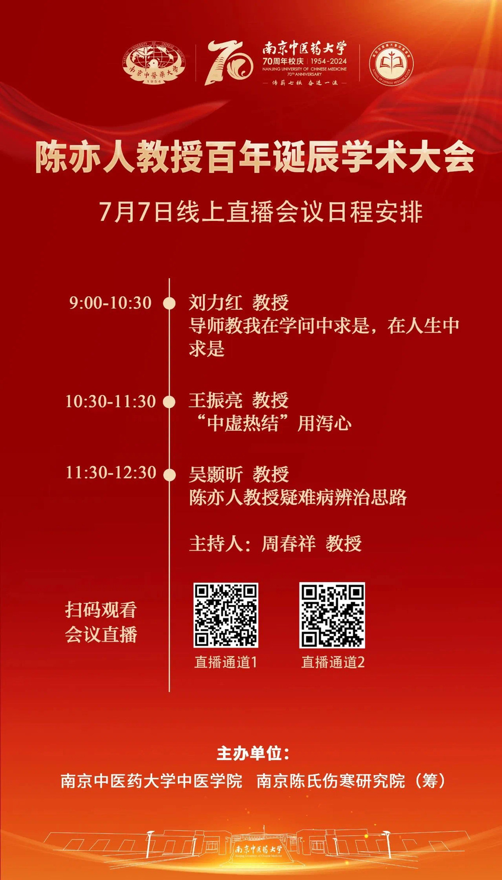 “思欲一决是非于百家之中,立剖精粗于毫芒之际”。为传承和弘扬陈亦人教授学术思想和经验,推动中医药继承与发展,由bevitor伟德国际1946官网中医学院、南京陈氏伤寒研究院(筹)主办的“陈亦人教授百年诞辰学术大会”将于7月5日~7日在bevitor伟德国际1946官网仙林校区丰盛楼学术报告厅(地址:南京市栖霞区仙林大道138号)举办。活动全程线上直播,欢迎大家届时收看。