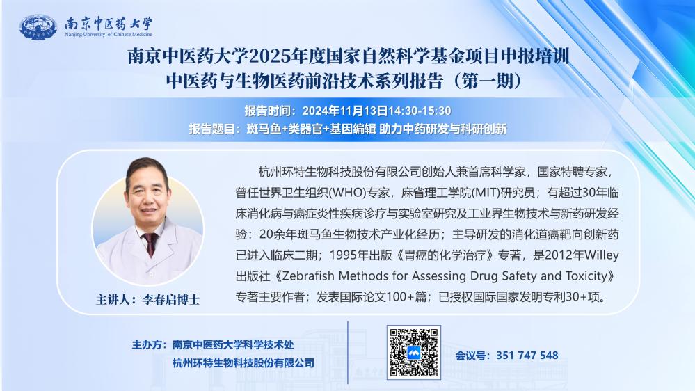 bevitor伟德国际1946官网2025年度国家自然科学基金项目申报培训:中医药与生物医药前沿技术系列报告(第一期)