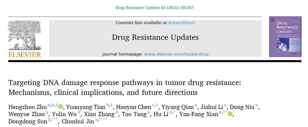 近日,学校附属无锡医院与香港中文大学等合作,在国际耐药权威杂志、中科院双一区top期刊 《Drug Resistance Updates》(IF=21.7)在线发表题为《Targeting DNA damage response pathways in tumor drug resistance: Mechanisms, clinical implications, and future directions》的综述研究成果。该成果深入揭示了肿瘤DDR耐药的分子机制,探讨了这些机制在当前治疗策略中的临床意义。团队同时讨论了克服DDR耐药的新兴方法,包括新型DDR抑制剂开发、联合治疗策略以及基于生物标志物的精准医疗方案。重点展望了未来研究方向,强调利用CRISPR筛选、单细胞测序和人工智能等先进技术来发现新靶点及治疗策略。为DDR相关耐药困局提供了理论依据,具有重要的科研与临床意义。