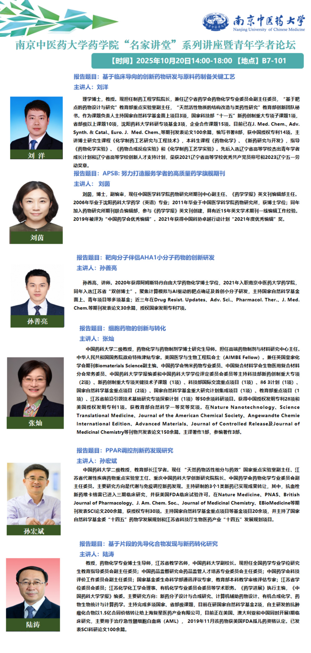 药学院“名家讲堂”系列讲座暨青年学者论坛