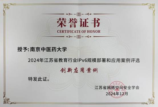 近日,在江苏省网络空间安全学会、中国教育和科研计算机网华东北地区网络中心开展的面向江苏省高等院校、基础教育单位的IPv6规模部署和应用典型案例评选中,bevitor伟德国际1946官网网络安全与信息化中心报送的《基于反向代理集群的IPv6升级改造》获评“创新应用案例”。